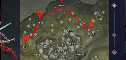 3、首先推荐前往森罗谷外围这半圈落点跳星元阵,单排玩家只需搜星元阵和岐黄居即可。