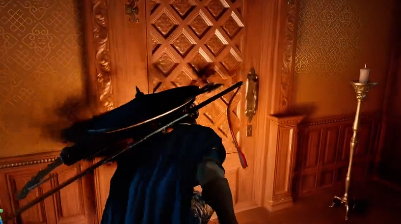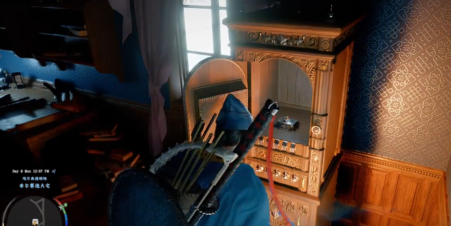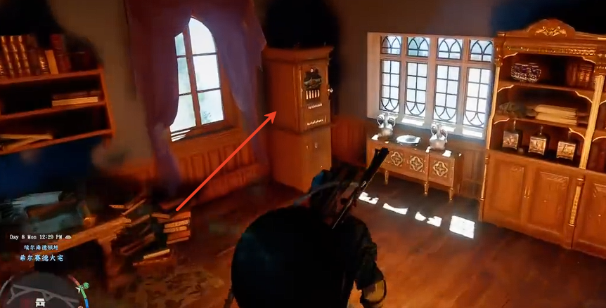 到达门口后,不要直接进门,而是跳上对面二楼窗户的位置进入屋内。