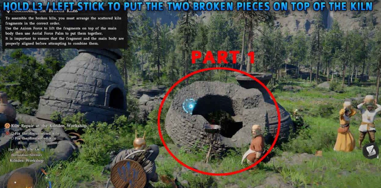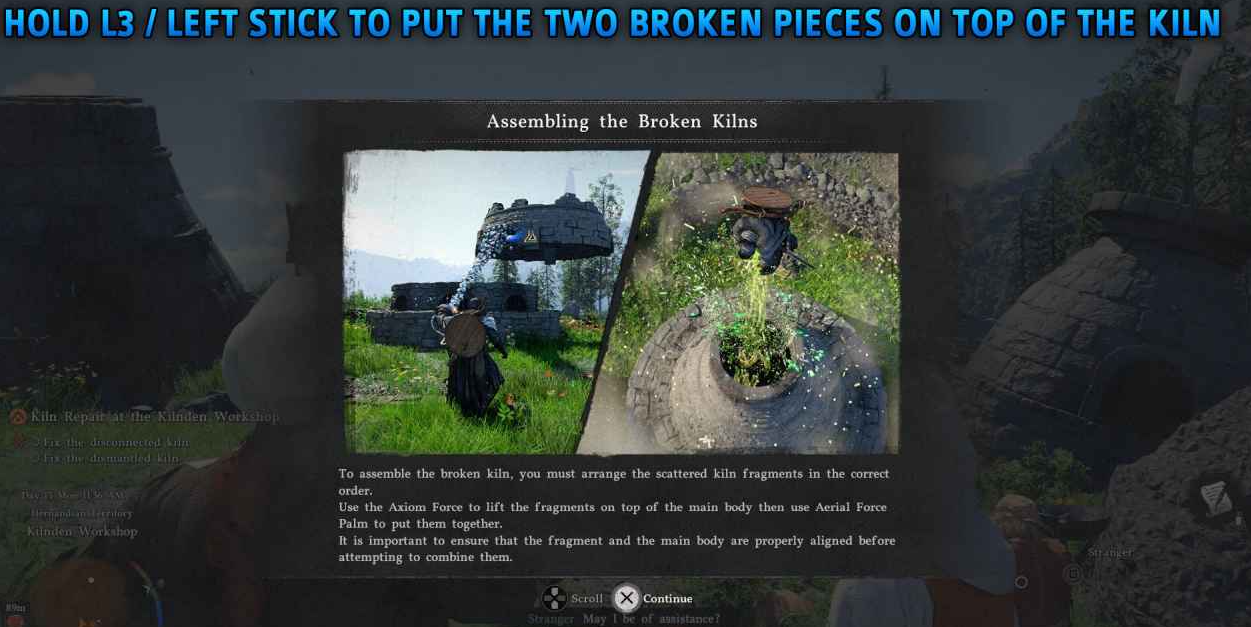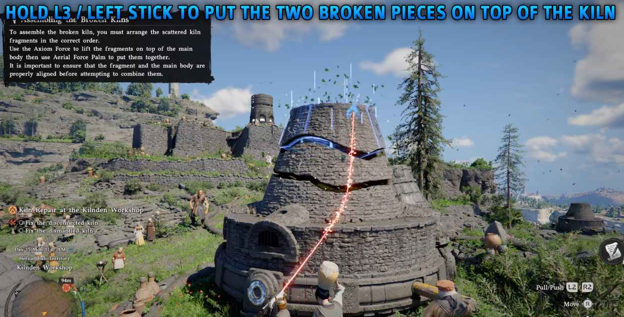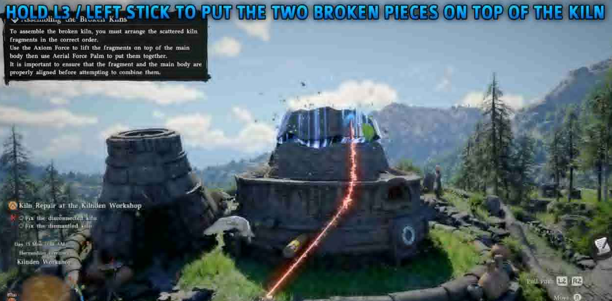 按住 L3(左摇杆)使用公理力,将部件抬起后放到窑炉顶部,部件会自动旋转到正确位置。
