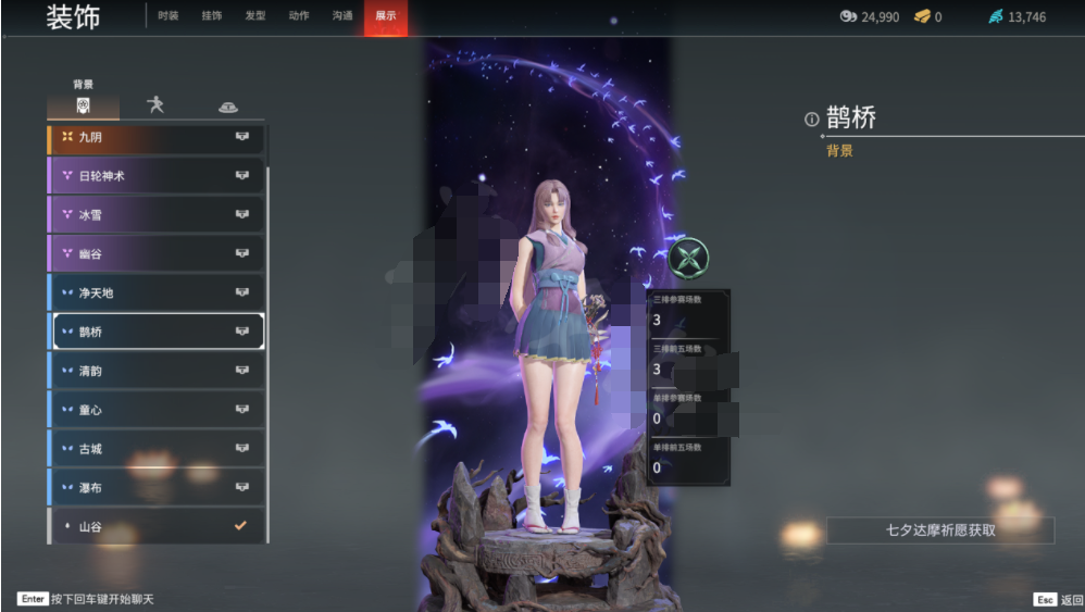 永劫无间鹊桥背景怎么获取?在游戏里玩家可根据不同角色,搭配不同印记技能和奥义,使用专属武器将敌人击败即可。有些除日常任务副本外,还会不定期举办各种活动,按照要求完成即可领取奖励,那么鹊桥背景如何获得呢,下面是小编整理的方法,有需要的话可以看看。