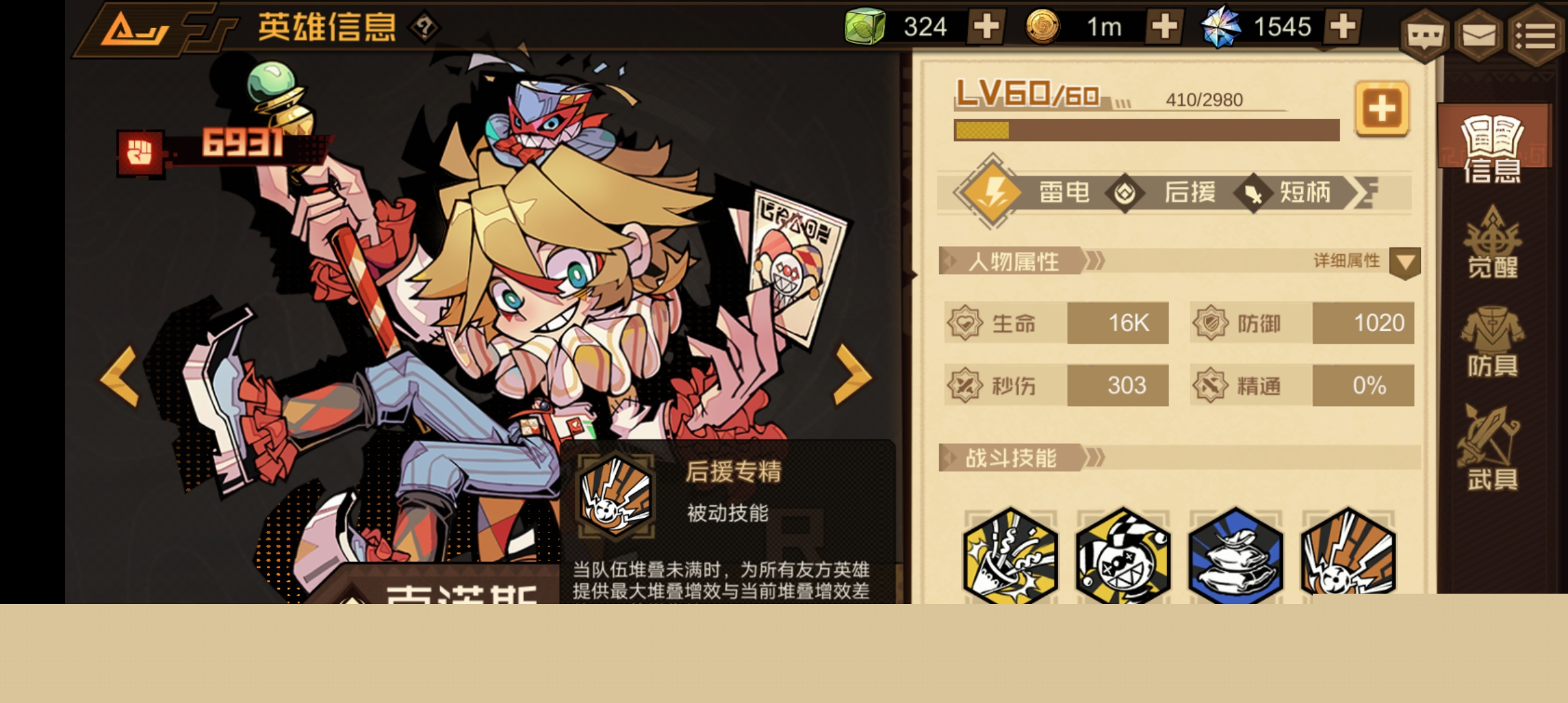 技能强化:Lv.2基础跌落恢复提升量增加至15%;Lv.3 还会使堆叠中的英雄攻速提升
