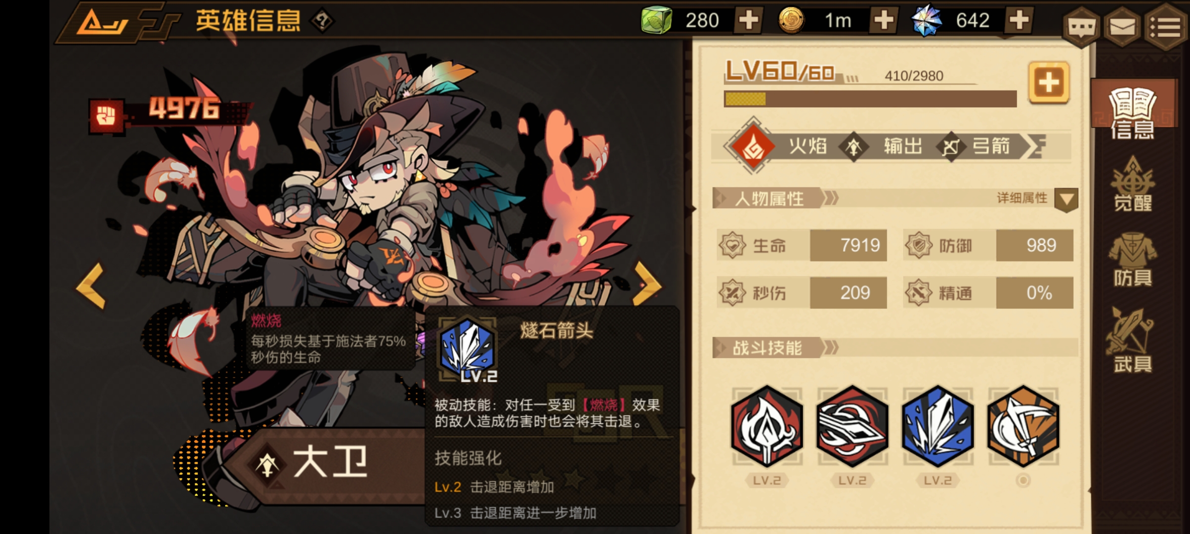 技能介绍:被动技能:对任一受到【燃烧】效果的敌人造成伤害时也会将其击退