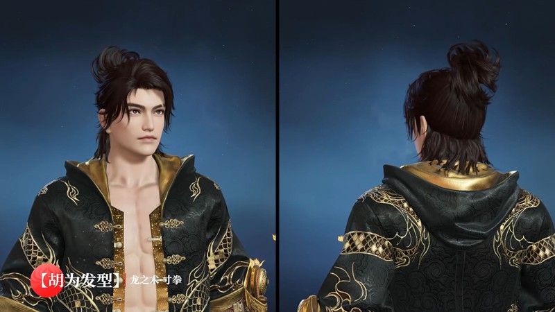 胡为-龙之道·不惧:中式短打对襟褂,袖与襟边饰有金色龙纹,彰显武者风格。