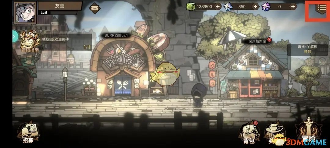 1、首先我们在游戏主页,点击右上角的菜单栏功能按钮;