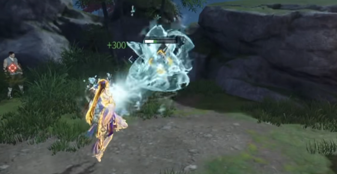 方诺一技能“傩舞”具备位移与反制双重特性:施放时向后轻盈跃步,同时在原地生成一枚傩面;傩面延迟爆炸,对范围内敌人造成击飞效果。若该技能释放过程中被振刀命中并触发白霸体判定,则本次所受伤害将被暂存,并于下一次“傩舞”命中时全额返还给目标。