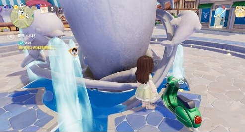 1、首先玩家需要在小镇喷泉位置找到海豚石雕。