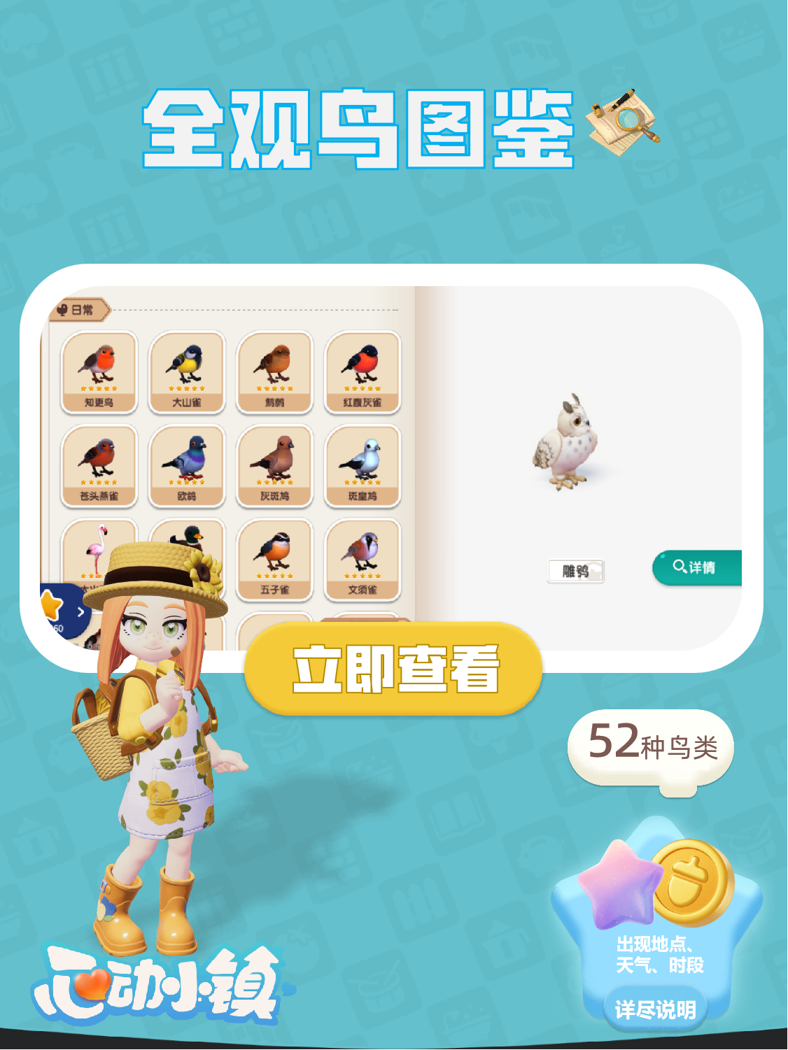 以上就是小编整理带来的心动小镇手游观鸟全图鉴-鸟类观察地点时间条件分享,更多相关攻略内容,请点击关注易采游戏网,小编将持续为您更新!