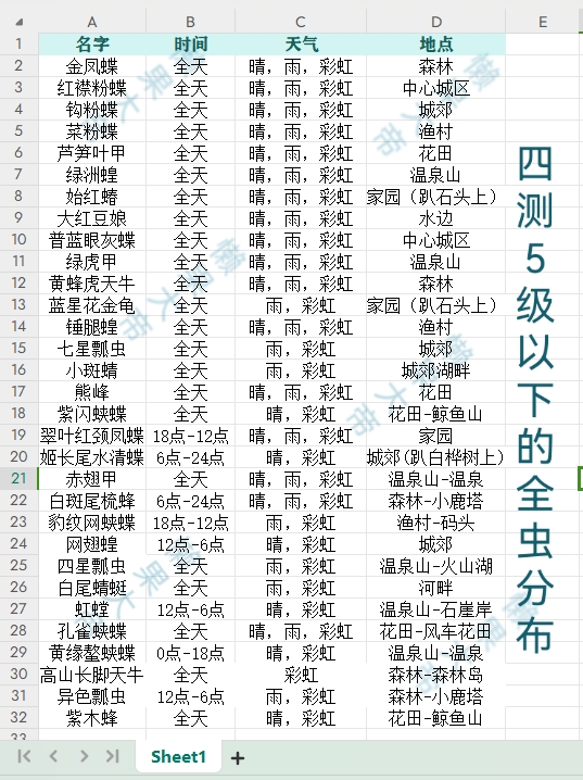以上就是小编整理带来的《心动小镇手游》捉虫图鉴大全,更多精彩内容,请点击关注易采游戏网!