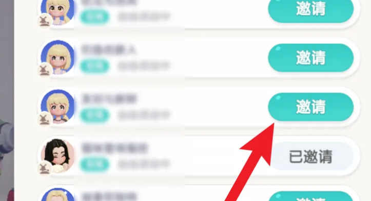 3、最后在出现好友列表页面,找到要邀请的好友,点击右侧的邀请按钮