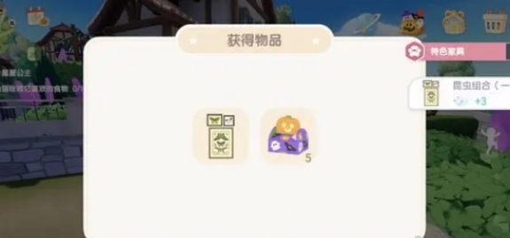 4、下楼找琼女士对话,再次和贝莉交付任务,得到南瓜相框和5个材料包。