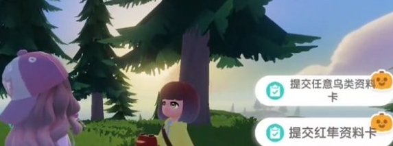 3、进行对话,会让玩家们个她任意三张鸟类资料卡。