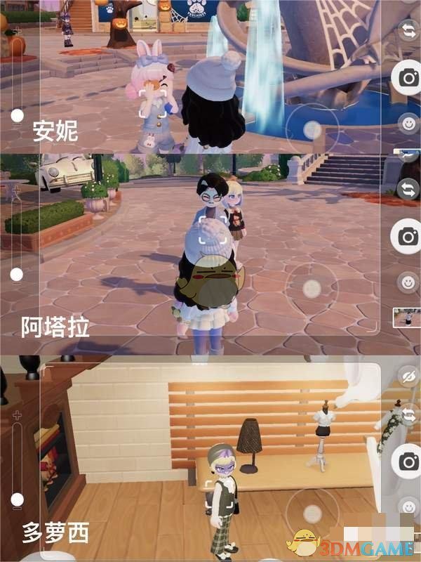 2、找中心广场戴着面饰的三名居民,用右下角的相机拍一下(我拍的是安妮、阿塔拉、多萝西)