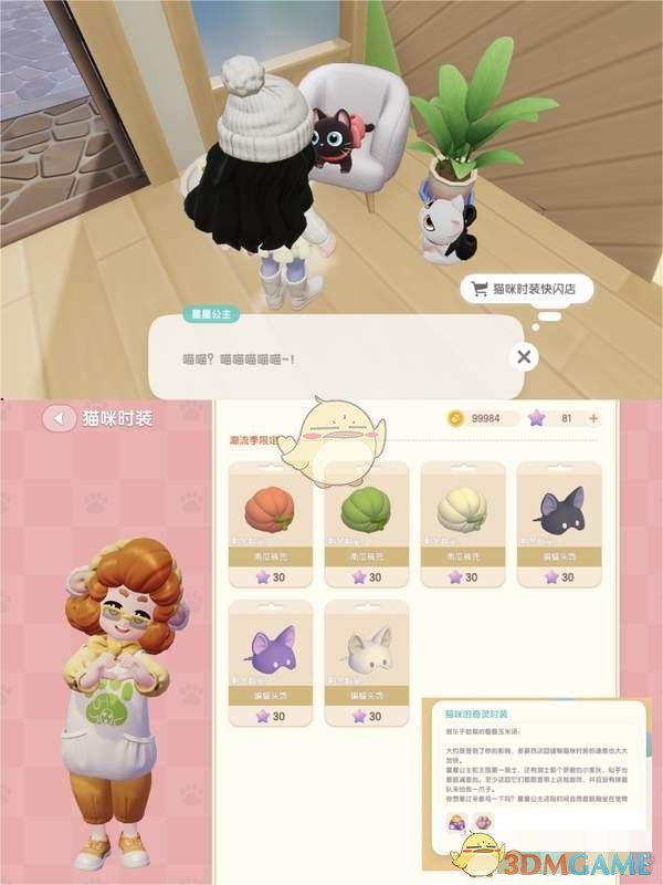 6、宠物店里的星星公主猫咪开放了猫咪时装快闪店,可以购买奇灵夜季猫咪时装(30星一个)