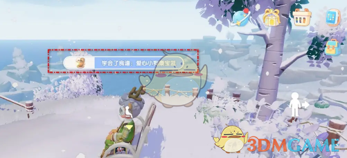 答:在飘扬热气球的鲸鱼山顶点击小狗气泡即可学习食谱。