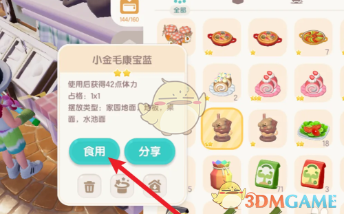 答:在背包页面找到小金毛康宝蓝点击食用即可。