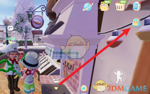 1、首先我们需要进入到心动小镇手游主页面,在右上角的位置点击背包进入。