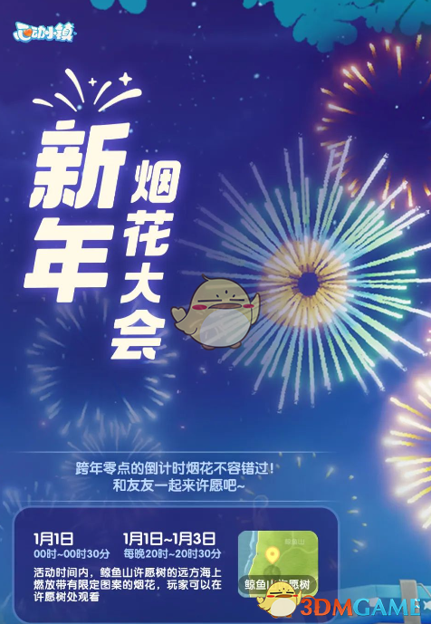 发展家可以在指定时间前往鲸鱼山欣赏新年烟花表演,和好友一起许愿