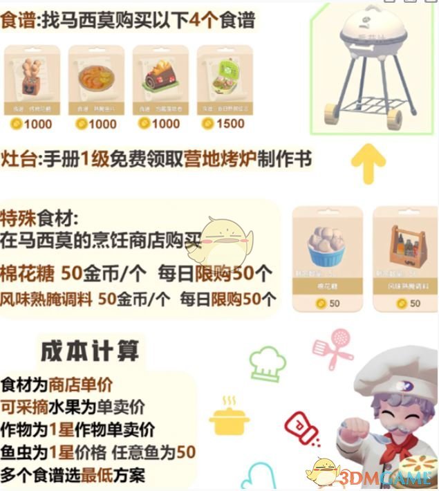 2、灶台:手册1级,免费领取营地烤炉制作书。