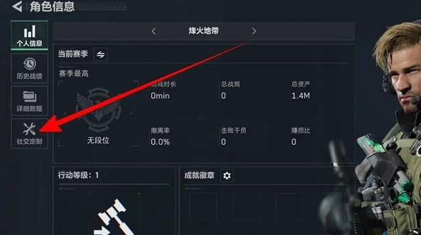2、点击个人头像后,玩家就可以进入个人信息页面,随后点击左边的社交定制。