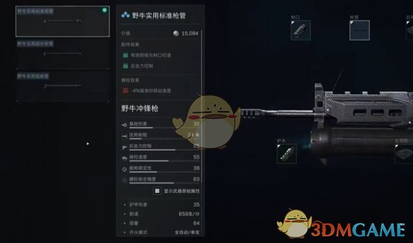 1、枪管:选择野牛实用标准枪管,能够改善射程和枪口初速度以及控制后坐力,从而强化火力输出的持续性。