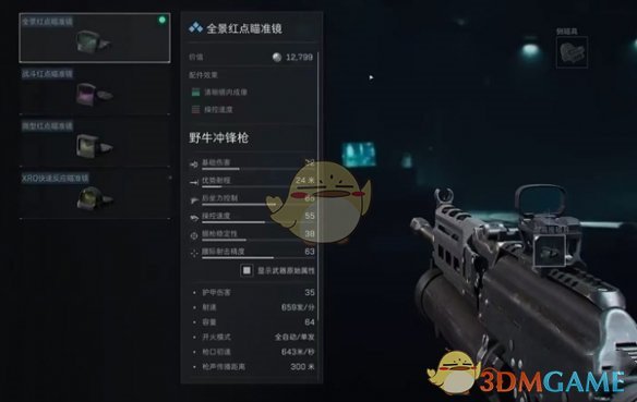 5、瞄具:选微型瞄具增高支架,用于抬高瞄准基线,全景红点瞄准镜,适合近距离战斗。