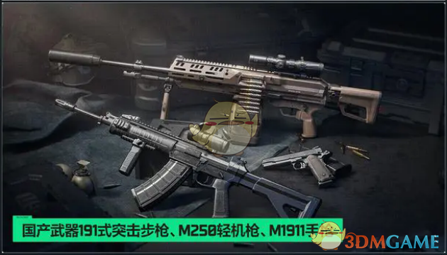 6、新武器:国产武器191式突击步枪、M250轻机枪、M1911手枪