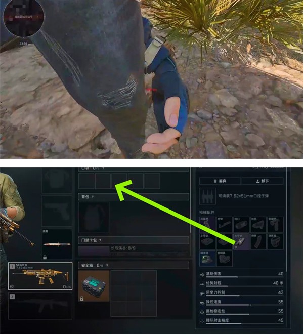 4、ps:只要是影响操作速度的配件,背起的瞬间拆一下,都可以触发背负时的走路速度。
