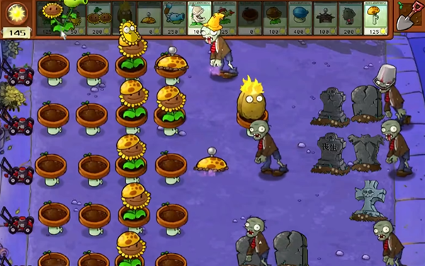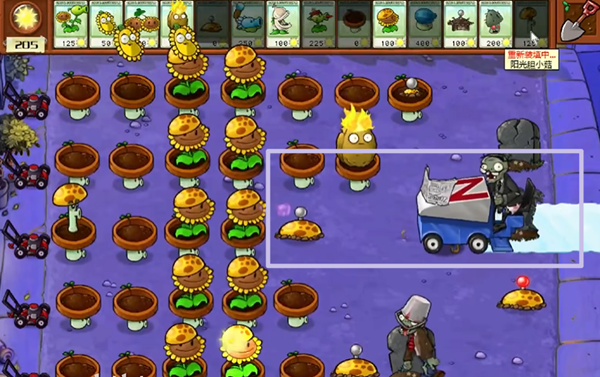 4、雪橇僵尸的处理方法是用土豆雷或者大蒜花,如果阳光充足的话,我们也可以使用向日葵炸弹。
