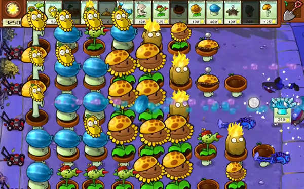 2、阳光向日葵和小盆菇,哪个cd好了就放哪个,速度越快越好,这样我们前期的发育就会很好。
