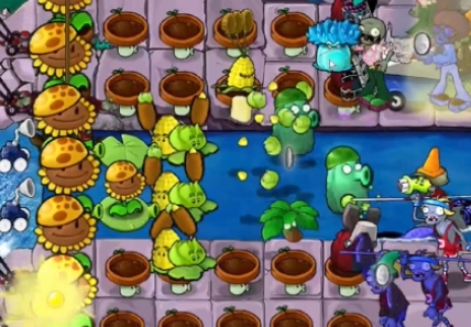 5、最后根据情况使用向日葵炸弹和寒冰豌豆菇就可以轻松过关了。
