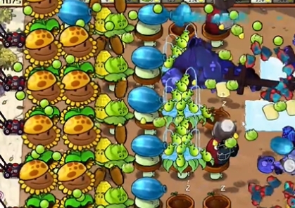 5、最后在最左侧种植一列豌豆荚许愿池和一列磁力坚果就可以了。