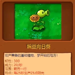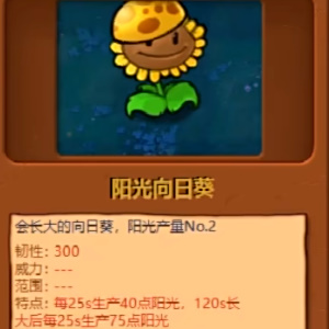 既可以攻击僵尸又可以产阳光,每25秒生产25阳光。