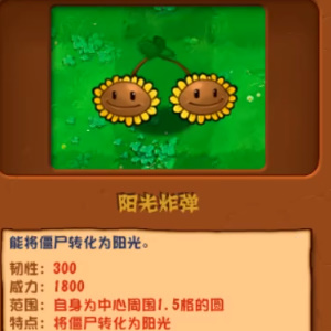 自身为中心周围1.5格的圆,将僵尸转化为阳光。