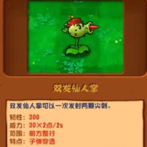 双发仙人掌可以一次发射两颗尖刺,范围为前方整行。