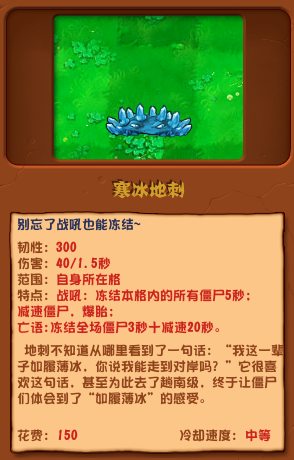 以上就是小编整理带来的植物大战僵尸杂交版寒冰地刺介绍,更多相关游戏攻略,请关注手游网!