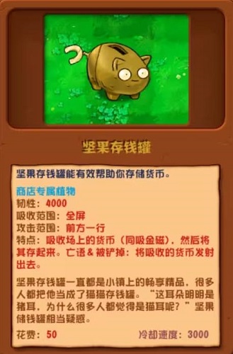 以上就是小编整理带来的《植物大战僵尸杂交版》坚果存钱罐介绍一览,更多相关游戏攻略,请关注手游网!