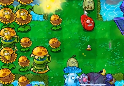 3、在左侧第二列种植一列阳光向日葵,在上方种植一个阳光土豆雷。