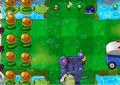 4、然后在中间草坪上种植两个汉堡射手,在右侧种植土豆雷和火辣坚果。