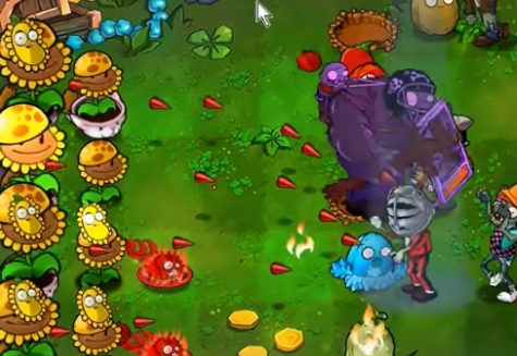 4、在中间补充两列川菜投手,在旁边一列种植两个僵尸豌豆。