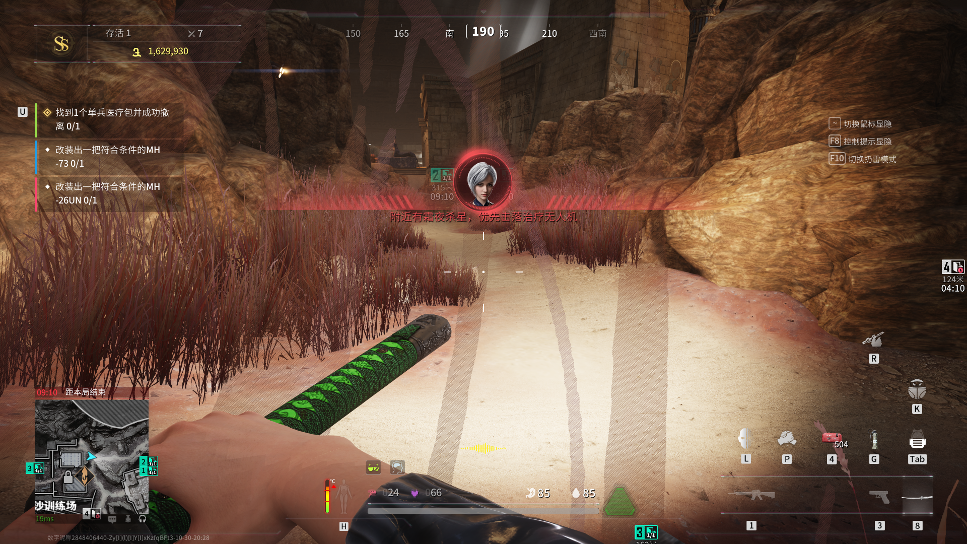 针剂推荐携带自救针、快速回复针剂,剩下则有啥带啥。自救针的作用是在倒地后,爬到女boss巡逻外的墙角后重新反击,快速回复针剂用于对拼时增加容错,可带可不带。红绳推荐携带一个,兴致来了捆绑一下女boss也不错。