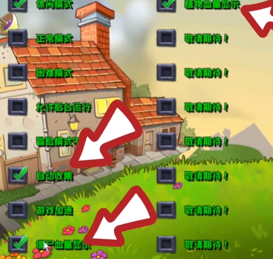 4、此外自动收集和血量显示也非常实用,可以优先开启。