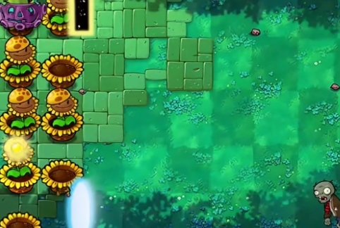 4、将左侧第一列的向日葵铲除,再补充一列寒冰仙人掌。