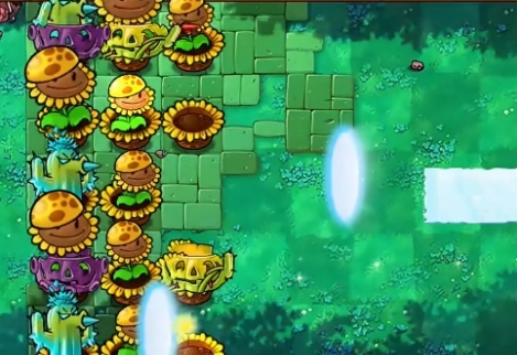 3、在传送门的所在行中分别种植一个寒冰仙人掌,并补充阳光南瓜头和忧郁南瓜头。