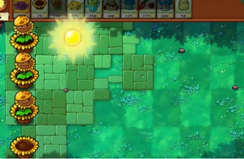 3、继续在左侧三列补充向日葵花盆和向日葵,在二路种植一个寒冰仙人掌。