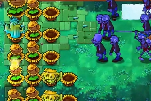 5、最后将左侧三列的阳光向日葵全部铲除,补充三列寒冰仙人掌和仙人掌南瓜头即可。