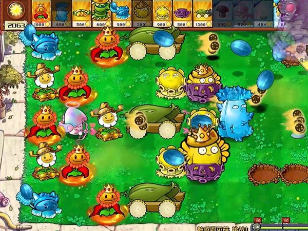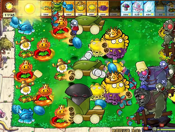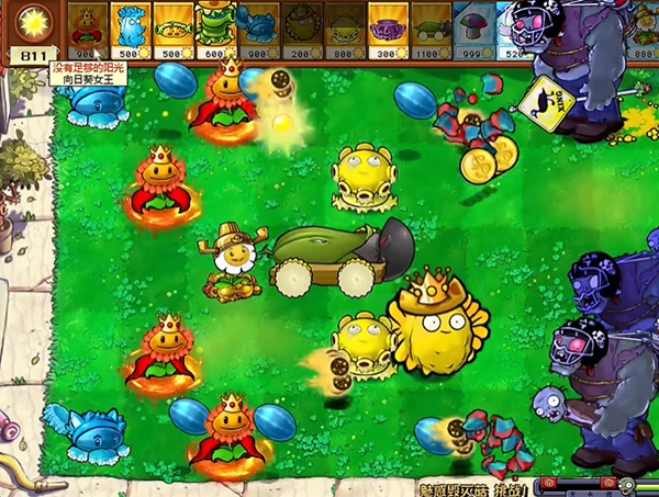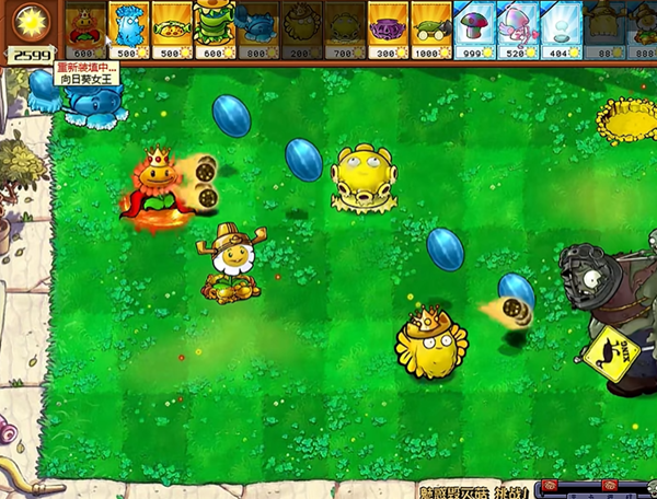 4、我们不断发射子弹来打巨人僵尸,最后无需生存阳光就可以轻松过掉这关了。