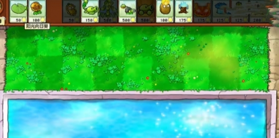 3、再在下方的草坪中种植向日葵,在右侧补充多个火炬坚果。
