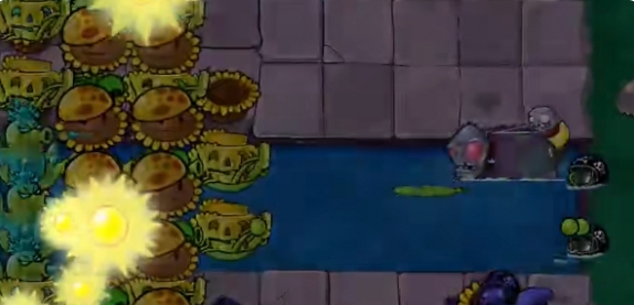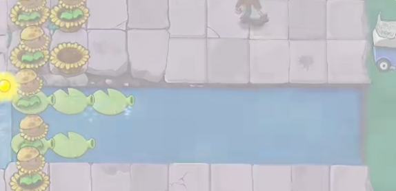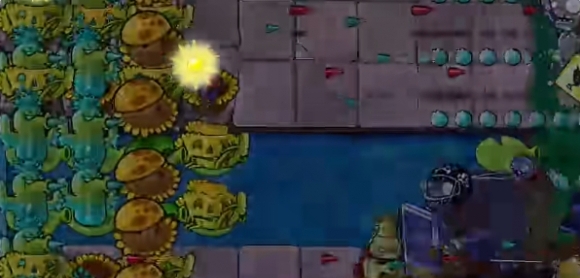 4、然后将最里侧的阳光向日葵铲除,补充一列寒冰仙人掌。