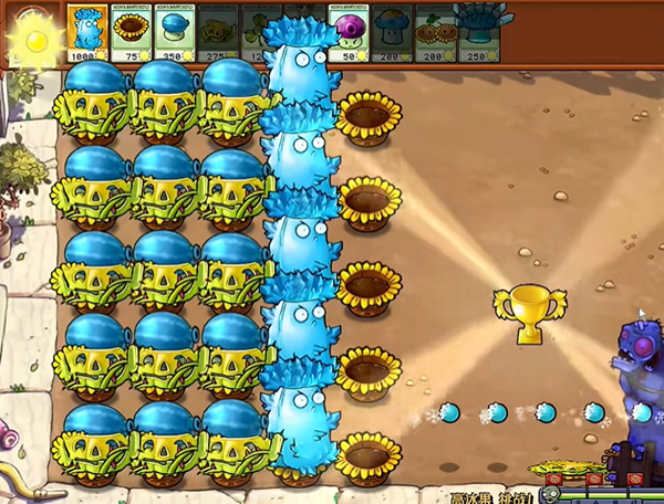 4、最终只需要种植满这两个输出植物,然后在第四列建造高冰果,僵尸绝对是过不来的。