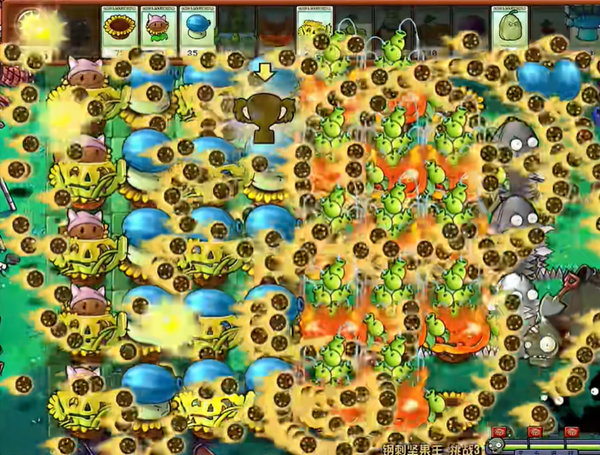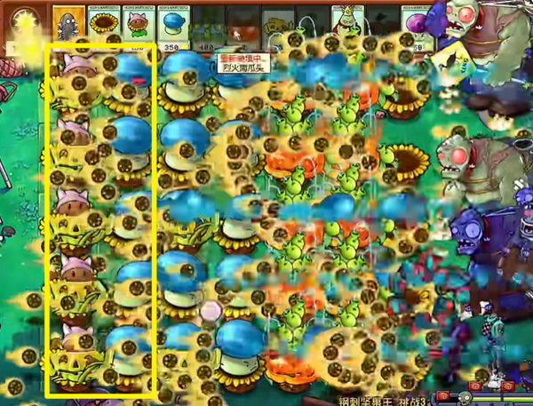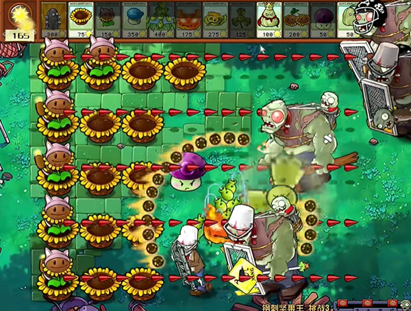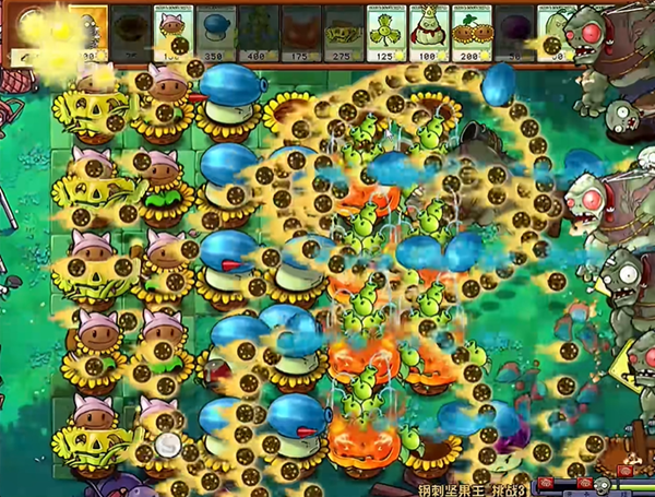 3、输出植物要不断去种植,同时也要为植物套上南瓜,有难处理的僵尸就用反制类植物。